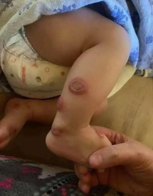 Insect bites can also create round, inflamed marks that resemble rings. Some bites trigger stronger local reactions in babies because their immune systems are still developing. These reactions may look dramatic but are usually harmless. If the bite becomes warm, increasingly swollen, or produces pus, medical attention is recommended to rule out infection.