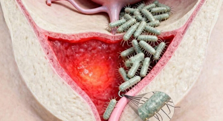 La imagen es clara, directa, imposible de ignorar. Dentro, donde todo debería fluir en silencio, algo invade. Algo microscópico, invisible a simple vista, pero devastador cuando se multiplica. Bacterias avanzan, se adhieren, se reproducen sin pedir permiso. Y el tejido, rojo, inflamado, responde con dolor.